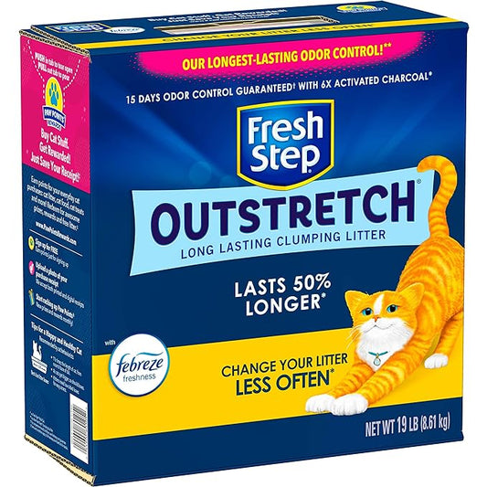 Fresh Step Outstretch, Long Lasting Clumping Litter with Febreze Freshness, Lasts 50% Longer*, Activated Charcoal, 19 Pounds, Pack May VaryRegular price $25.99Regular priceUnit price / per-