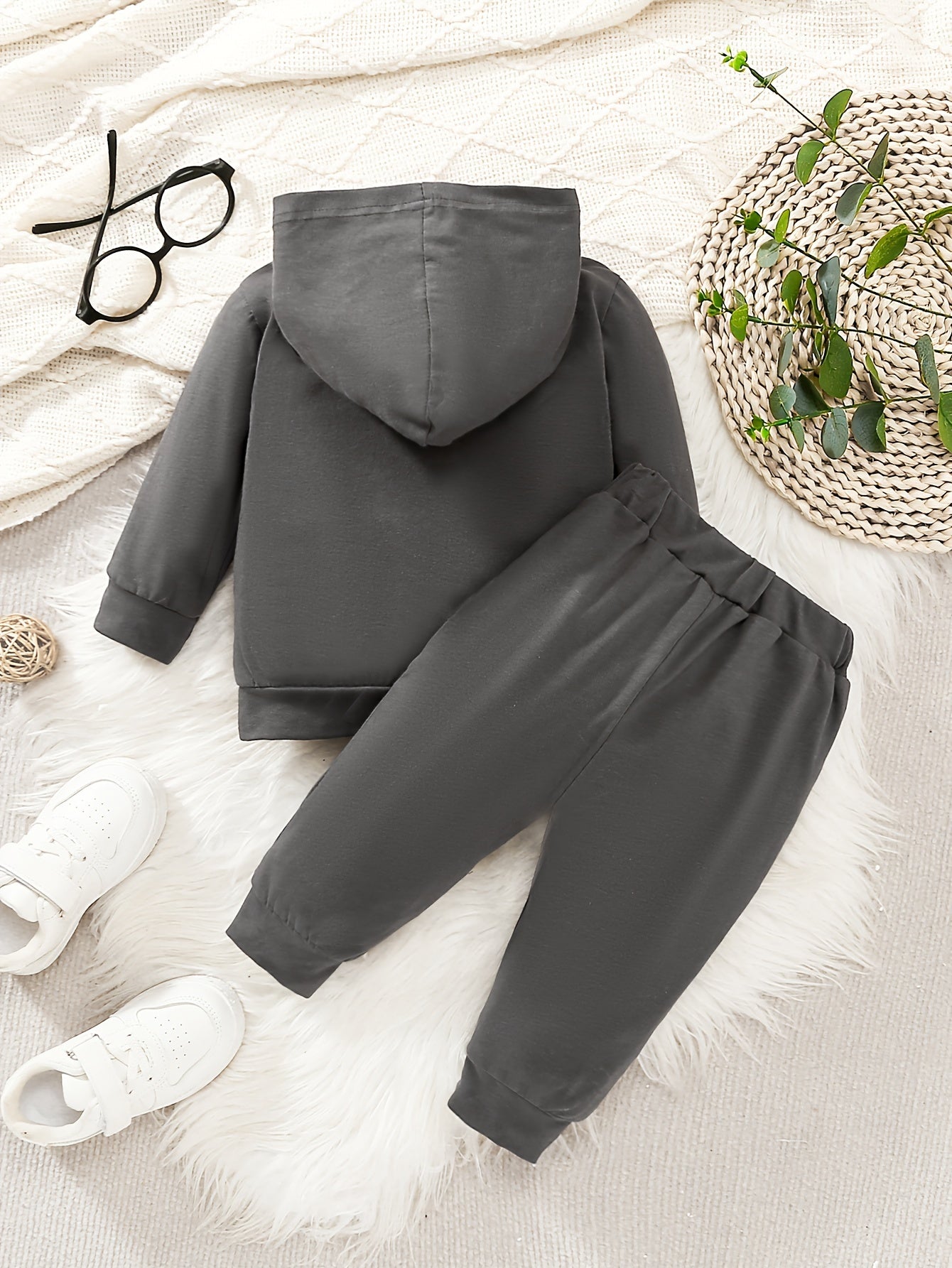 Baby Boy's Casual Fashion Outfit Hooded KING Print Long Sleeve Sweatshirt + Pants Set