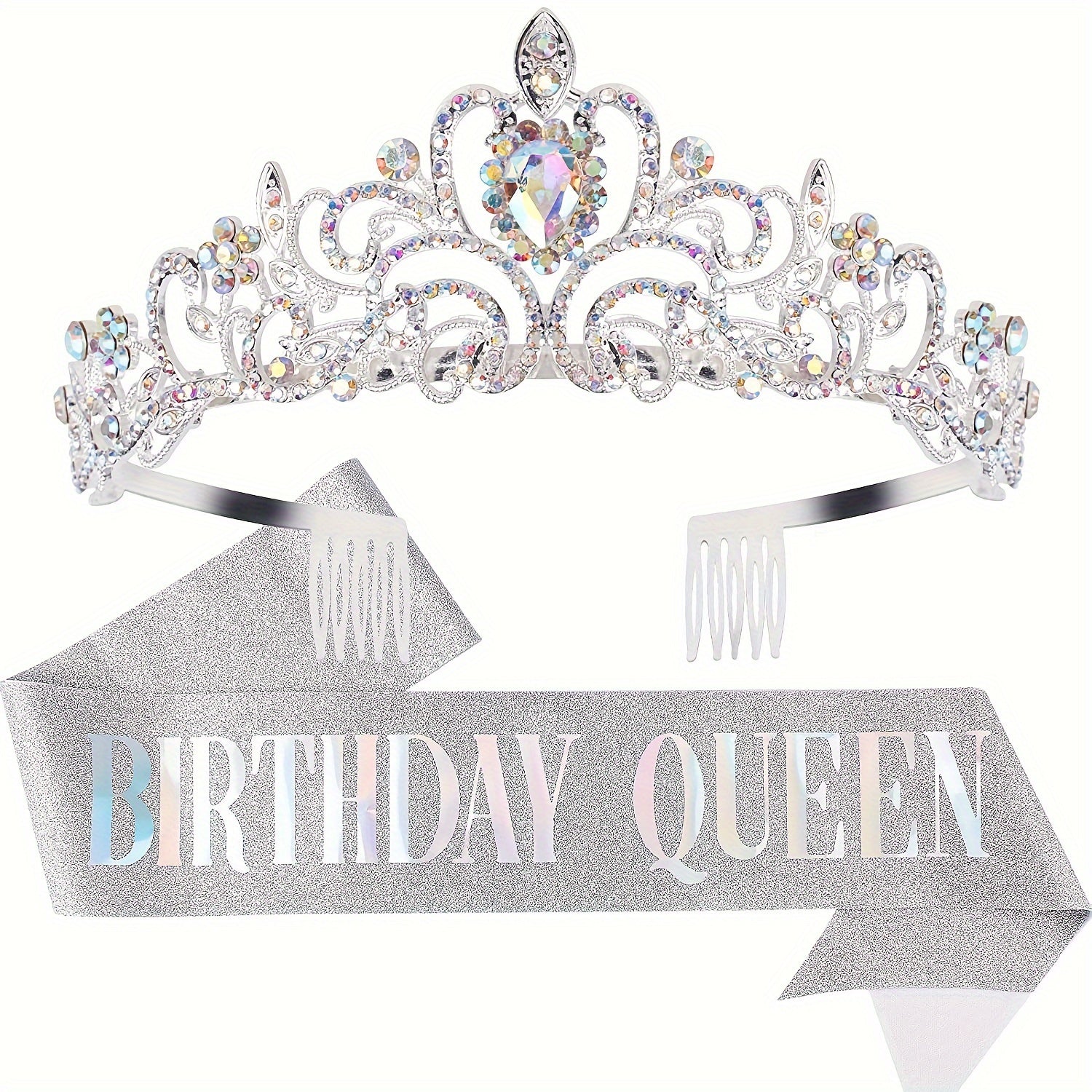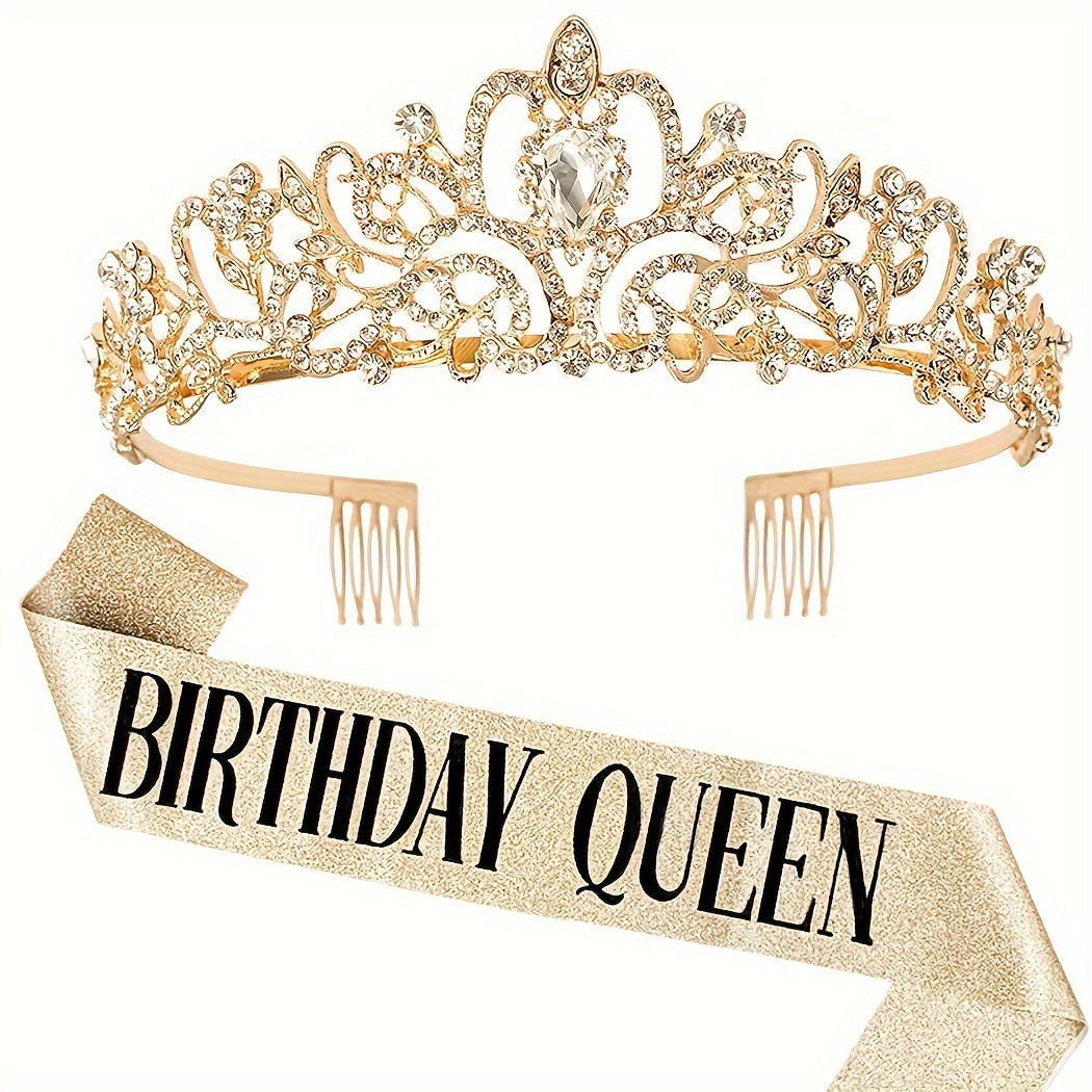 Birthday Party Dress Up Set, Including Birthday Crown And Sash For Girls, Birthday Decorations Set, Rhinestone Headband Hair Accessories Glitter Sash