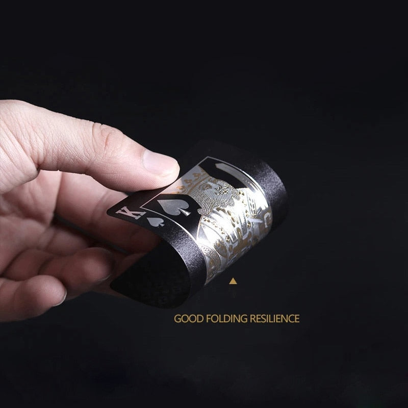 Specifications:Size: about 5.7*8.7 cm/2.24*3.46 inchesColor Black Gold Playing Card Game Card Group Waterproof Poker Suit Magic Dmagic Package Board Game Gift Collection