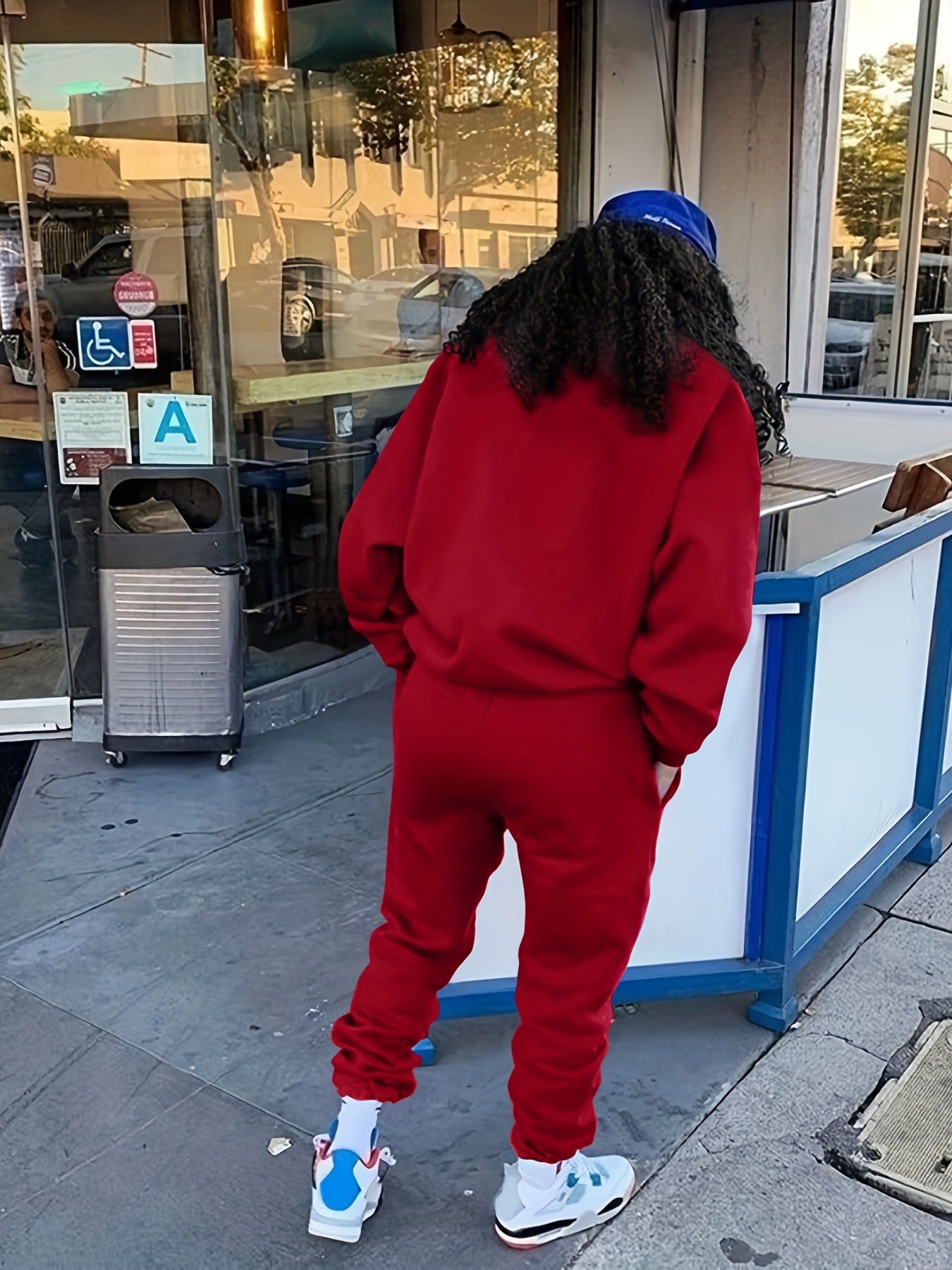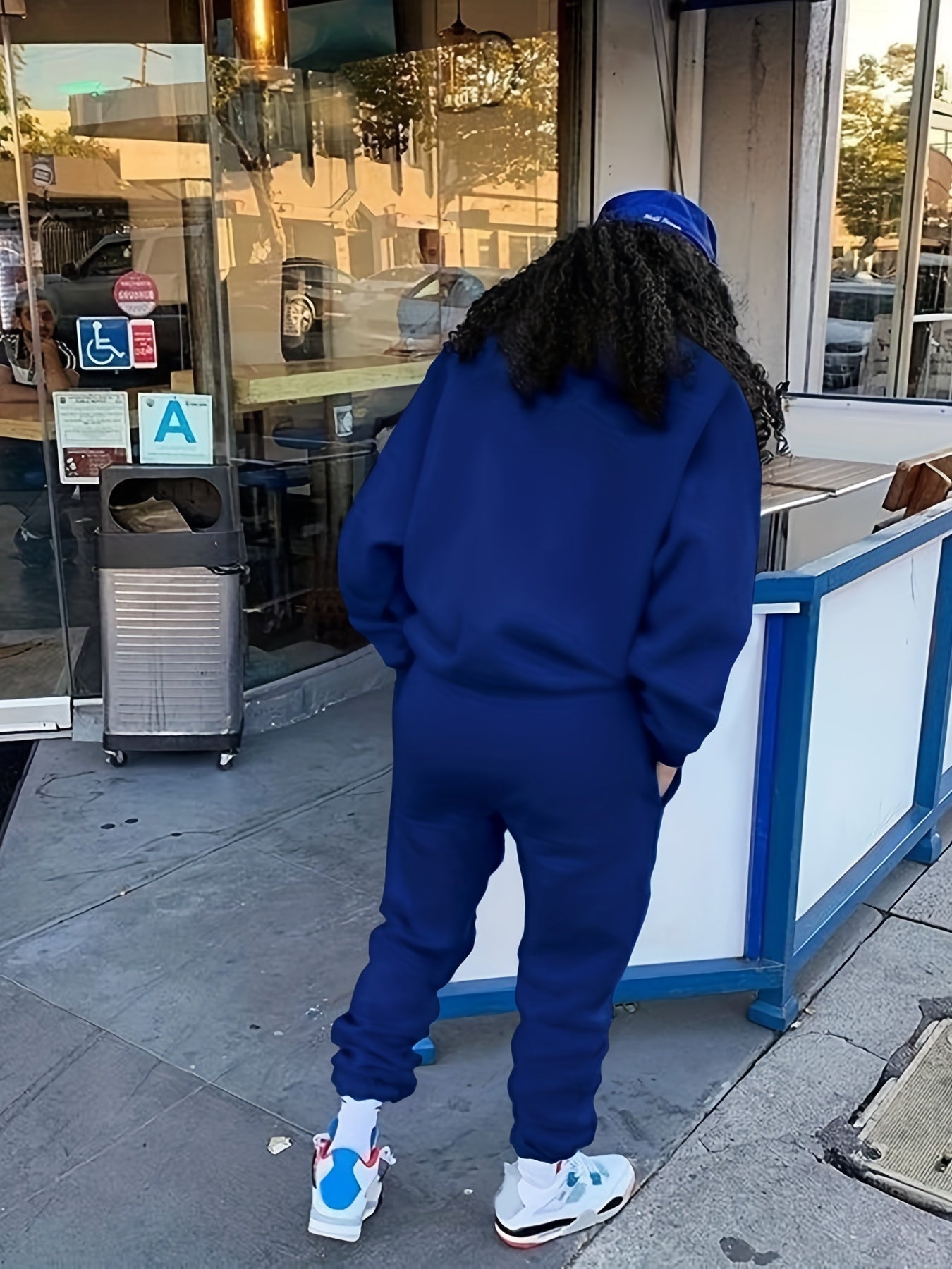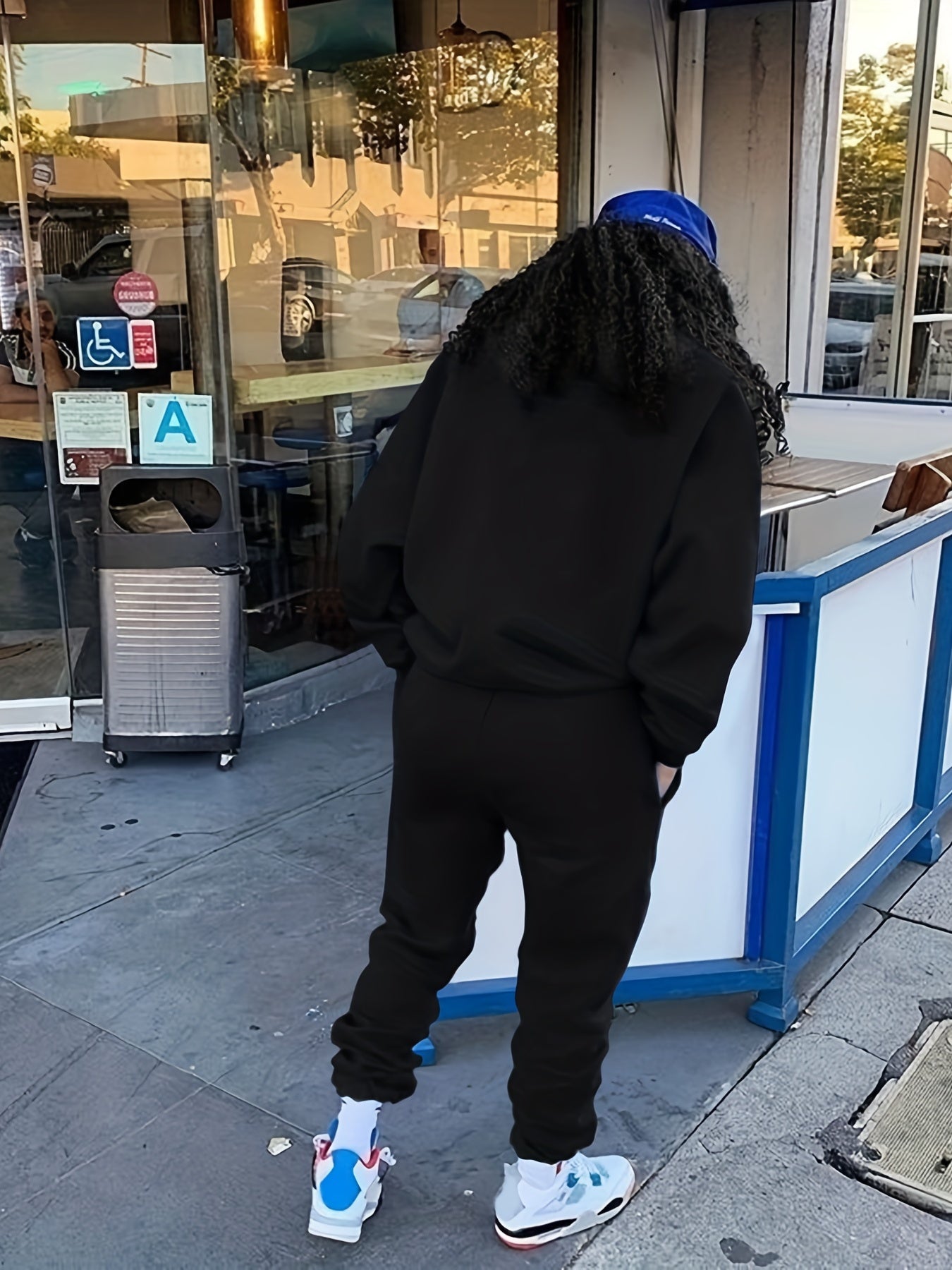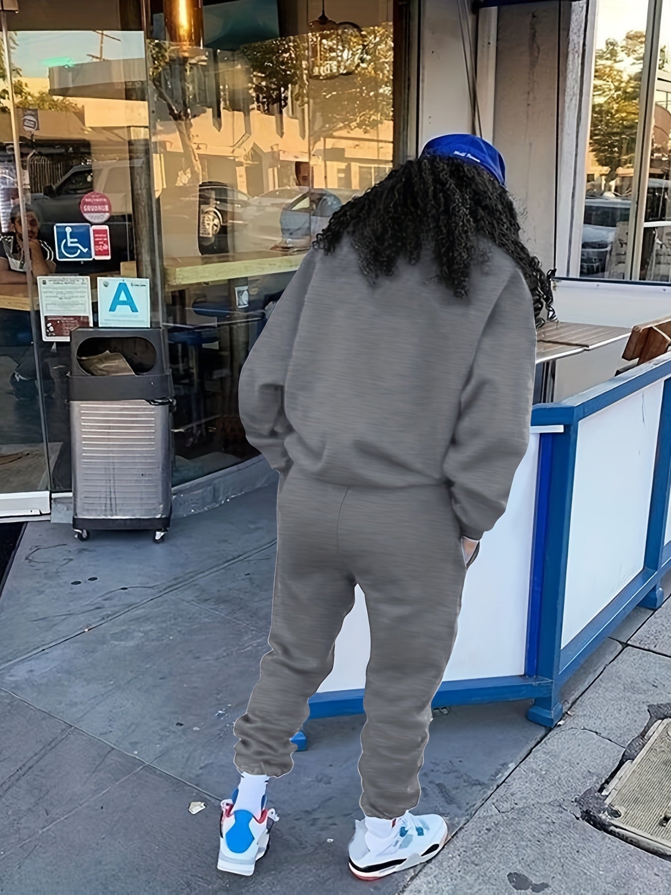 Blessed Letter Print Casual Two-piece Set, Crew Neck Long Sleeve Tops & Drawstring Jogger Pants Outfits, Women's Clothing