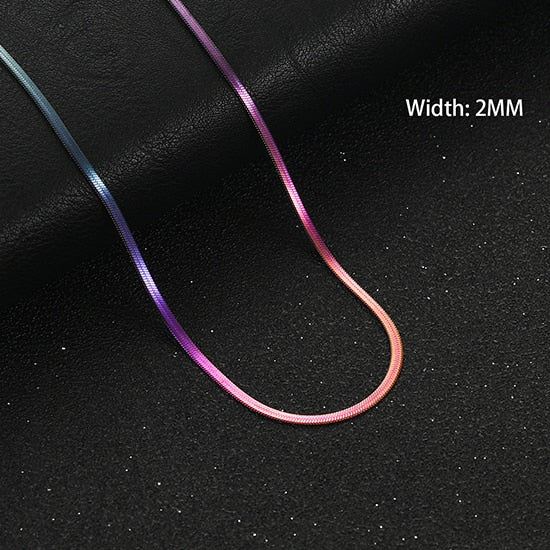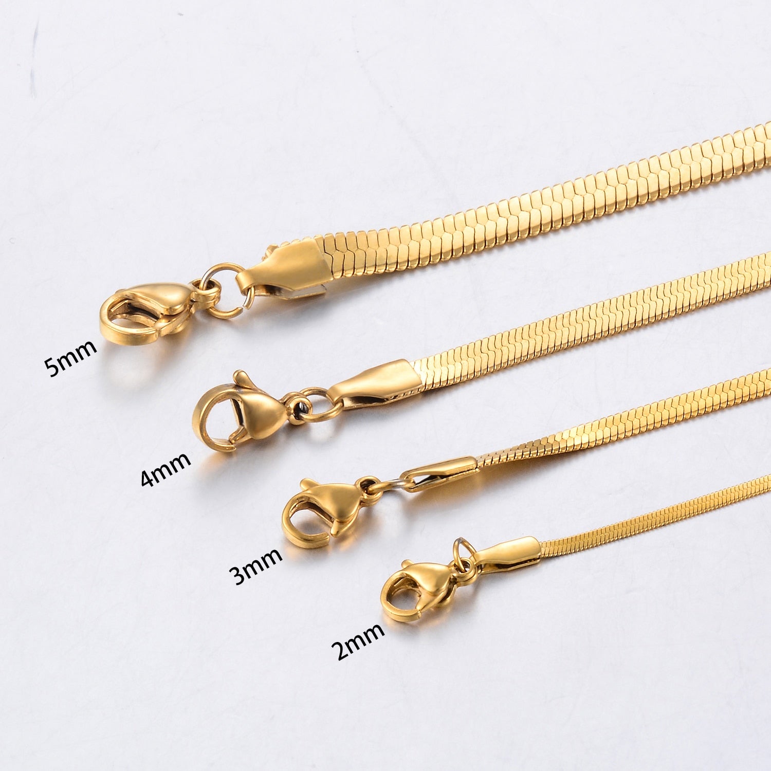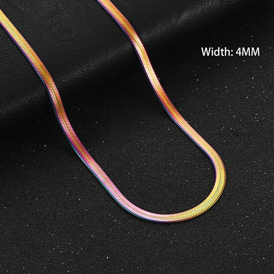 Introducing our fashionable Flat Gold Color Stainless Steel Necklace Blade Chain, designed for both men and women who appreciate trendy choker jewelry. Available in various widths ranging from 2mm to 5mm, this necklace offers versatility and personalization to suit your style. Crafted with precision from high-quality stainless steel, this necklace boasts a sleek and flat design, providing a modern and edgy look. The gold color adds a touch of elegance and sophistication to any outfit, making it a perfect accessory for both casual and formal occasions.
