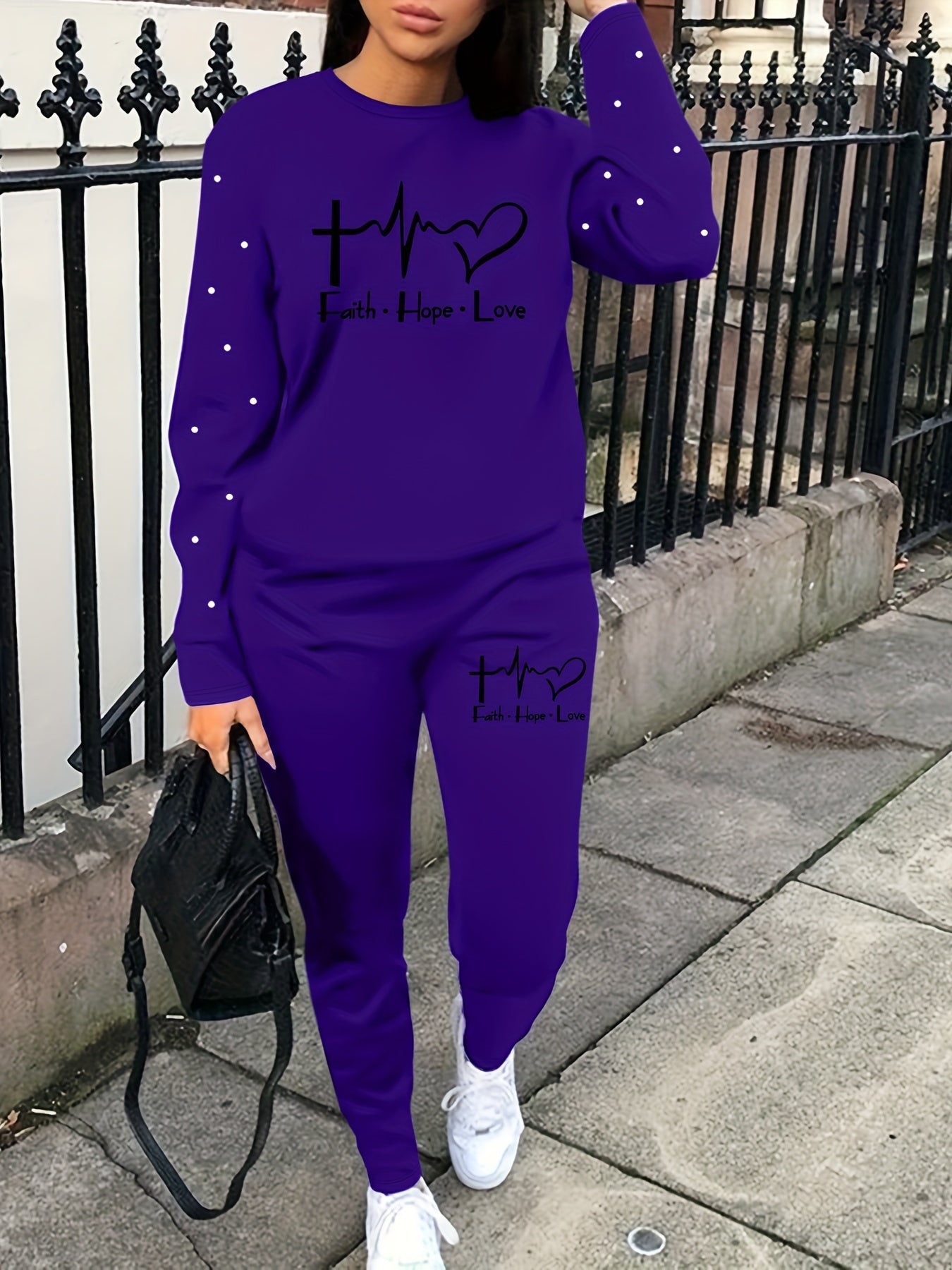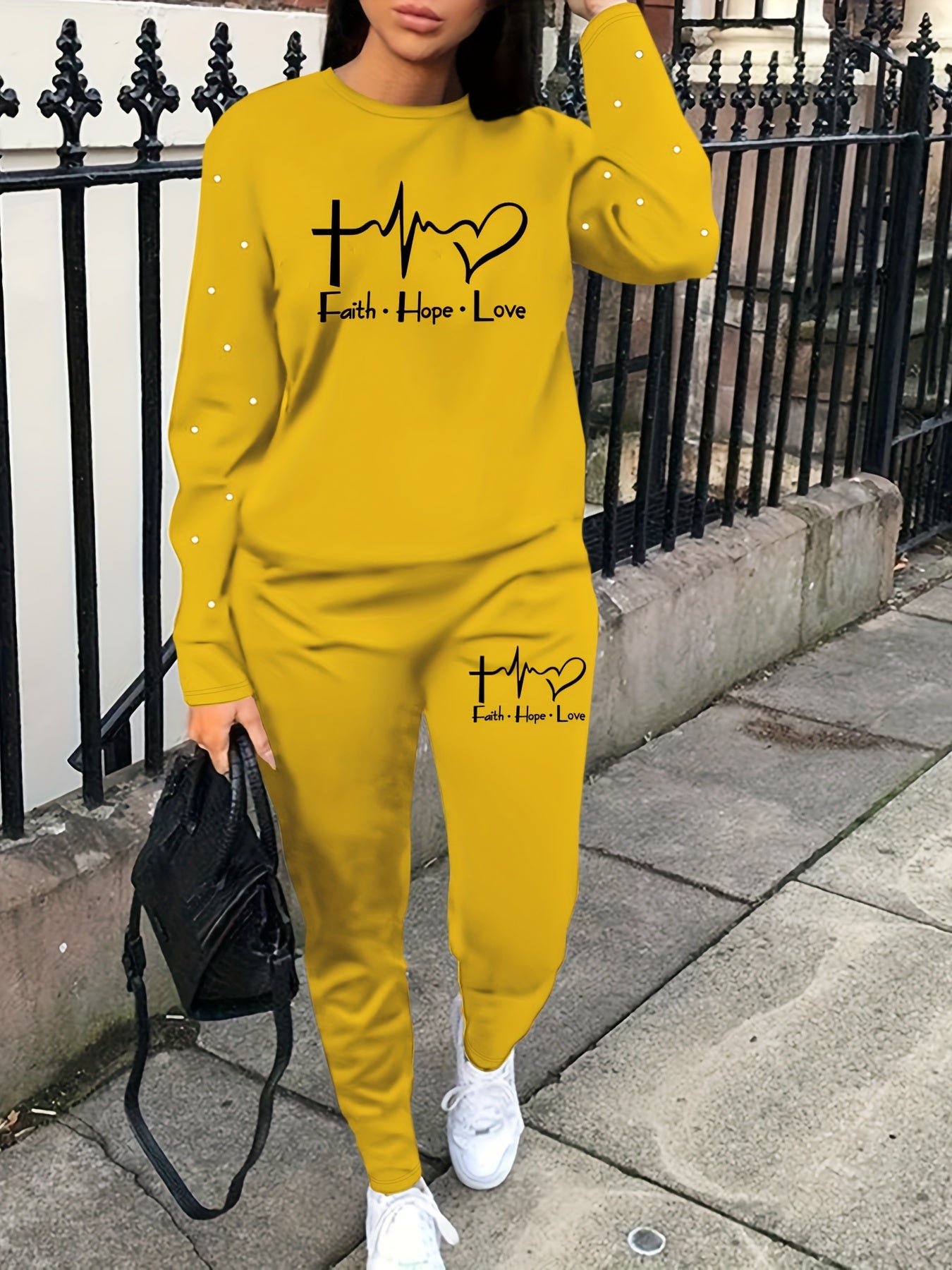 Graphic & Letter Print Two-piece Set, Casual Long Sleeve Sweatshirt & Sweatpants Outfits, Women's Clothing