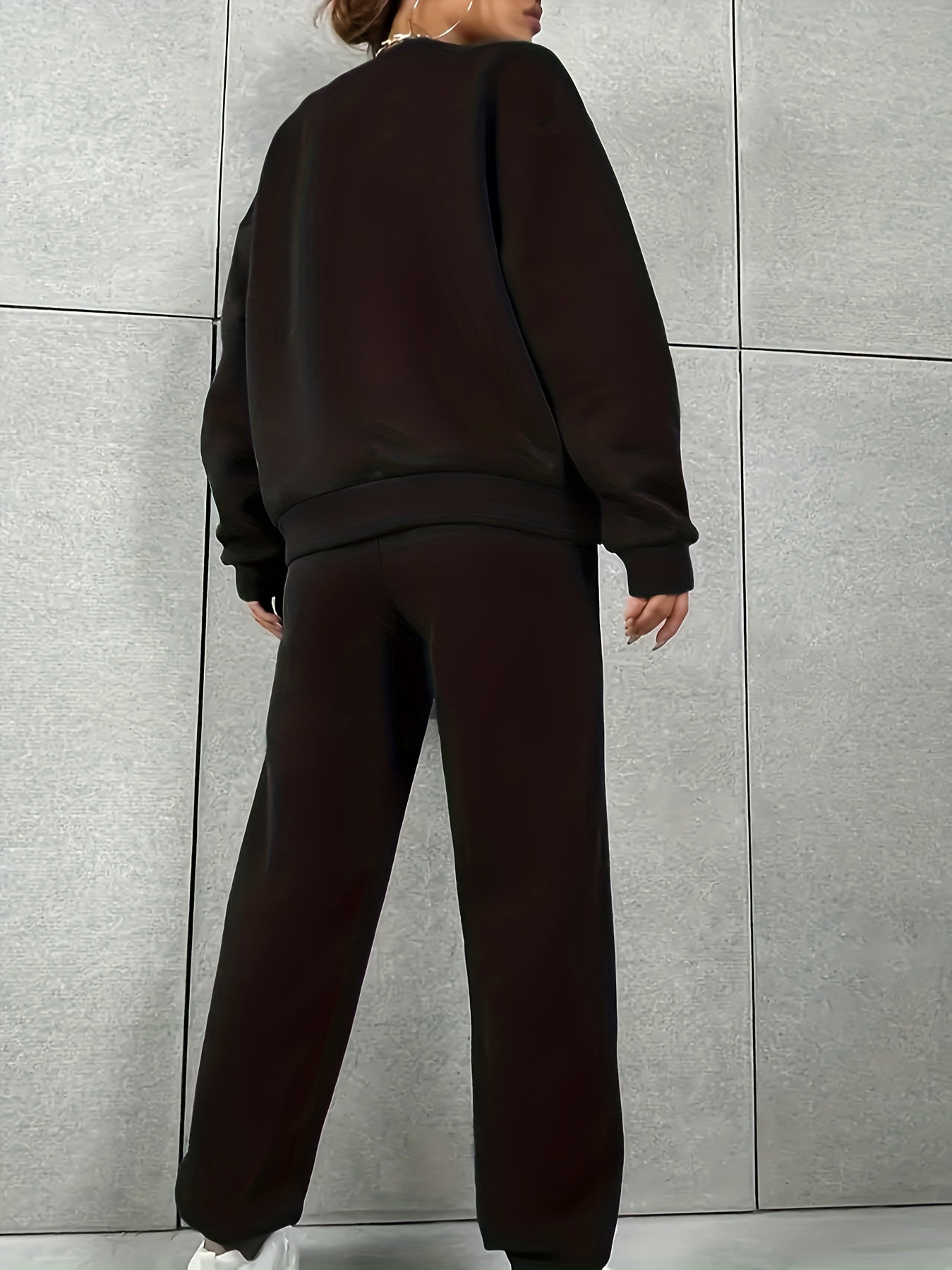 Plus Size Casual Outfits Set, Women's Plus Ombre Slogan Print, Long Sleeve Round Neck Sweatshirt & Jogger Sweatpants, Outfits Two Piece Set