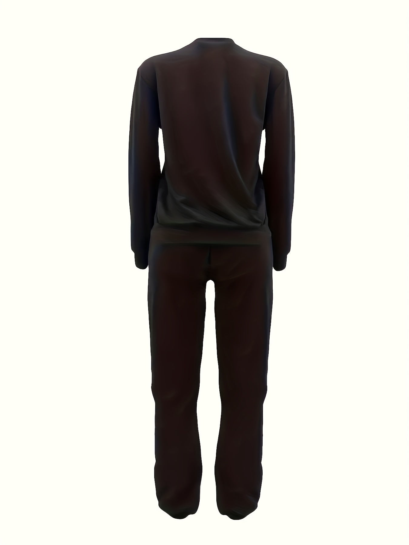 Plus Size Casual Outfits Two Piece Set, Women's Plus Slogan Print, Long Sleeve Round Neck Sweatshirt & Joggers, Outfits 2 Piece Set