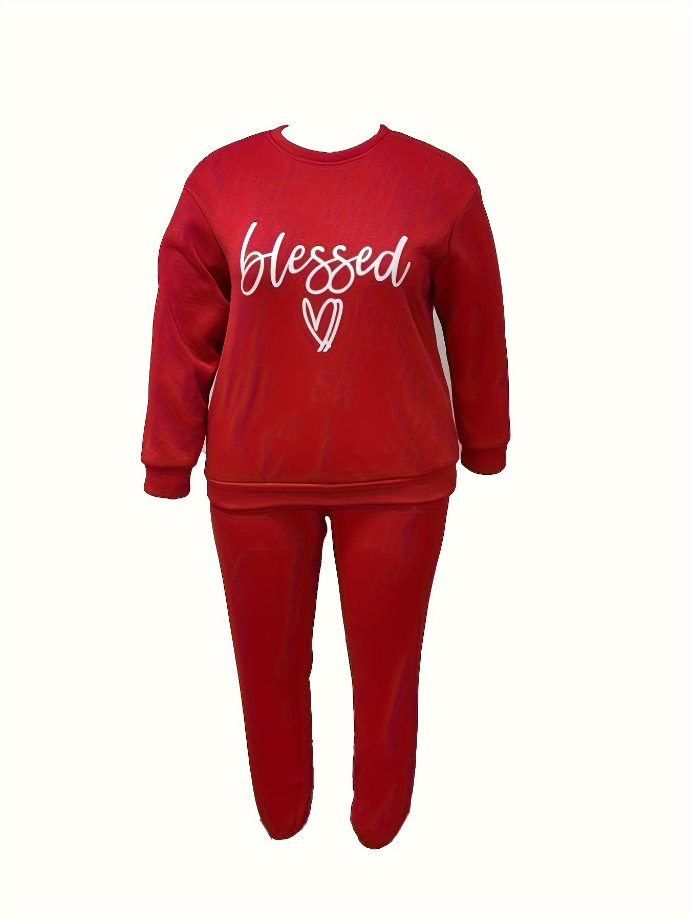Size 14 - 22 Casual Outfits Set, Women's Plus Letter & Heart Print, Long Sleeve Round Neck Sweatshirt & Joggers, Outfits 2 Piece Set